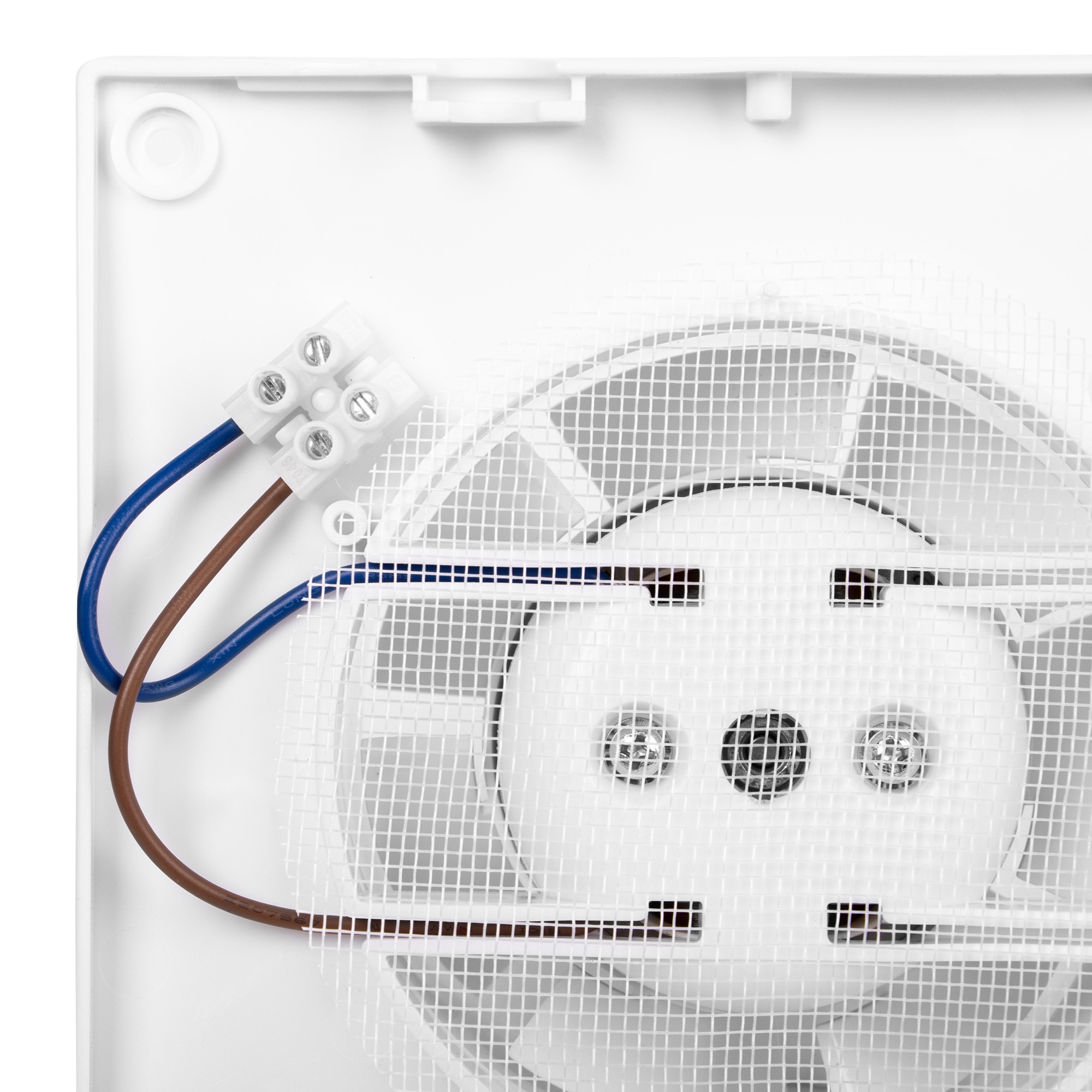 Высокий класс пылевлагозащищенности IP44 позволяет устанавливать вытяжной вентилятор в помещениях с высоким уровнем влажности. Лаконичный дизайн позволит стать прибору органичной частью любого интерьера. Устройство рассчитано для настенного и потолочного монтажа. Экологичный ABS-пластик сохраняет белый цвет на протяжении всего времени работы прибора.