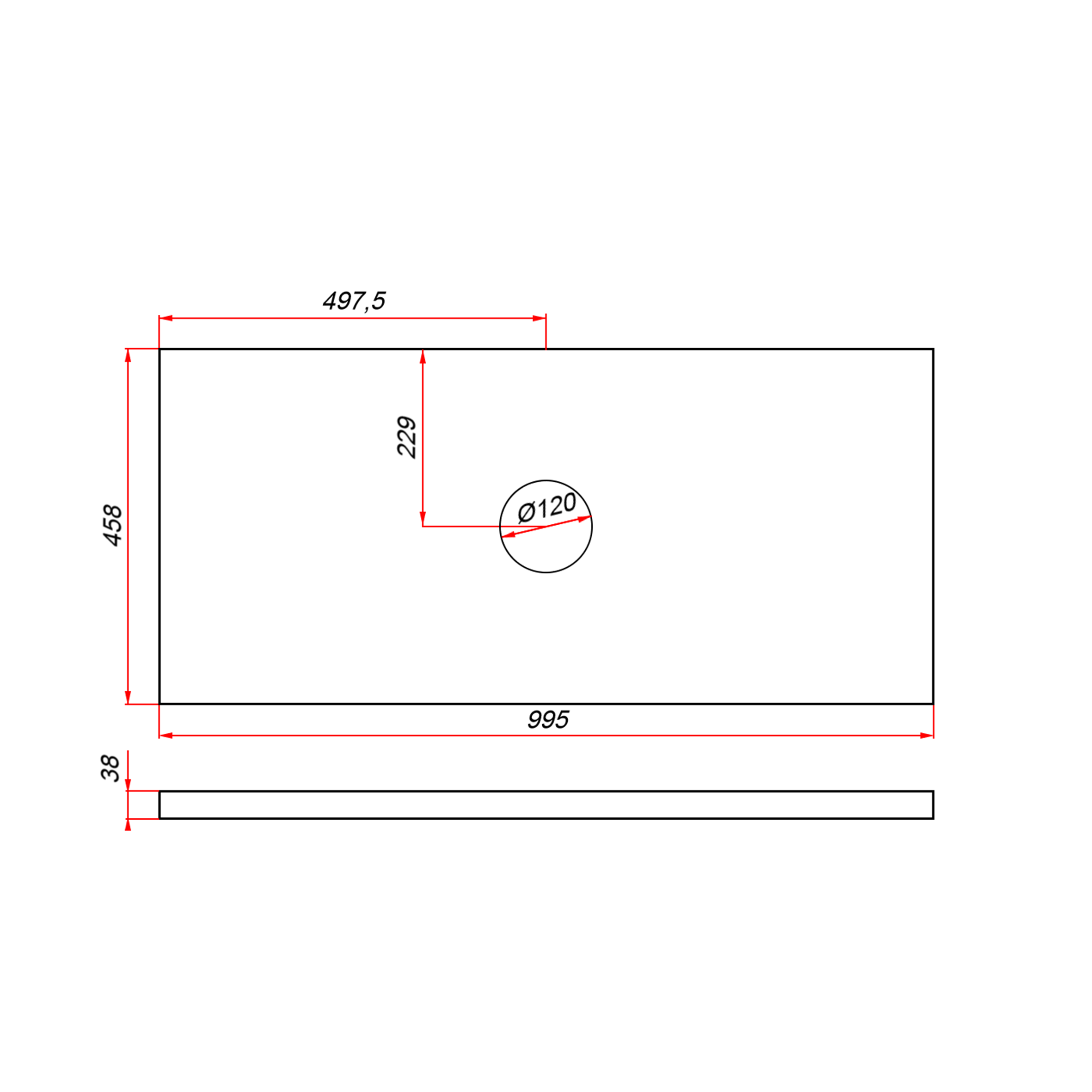 Столешница пластик HPL 38 Туя, 1 вырез, 995х458 мм