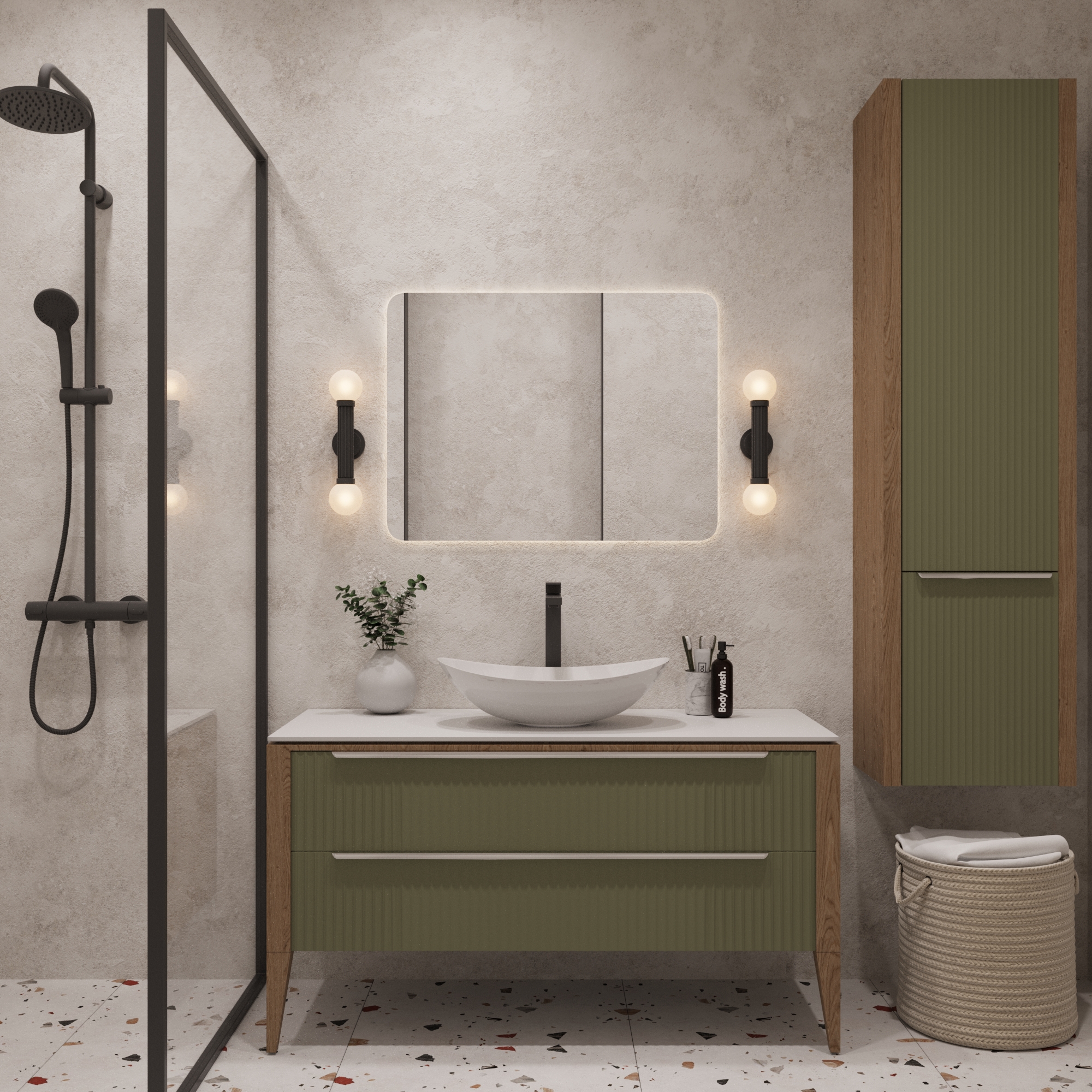 Тумба со столешницей Валенсия 100, Зеленый тростник / Столешница компакт-плита, Белая
